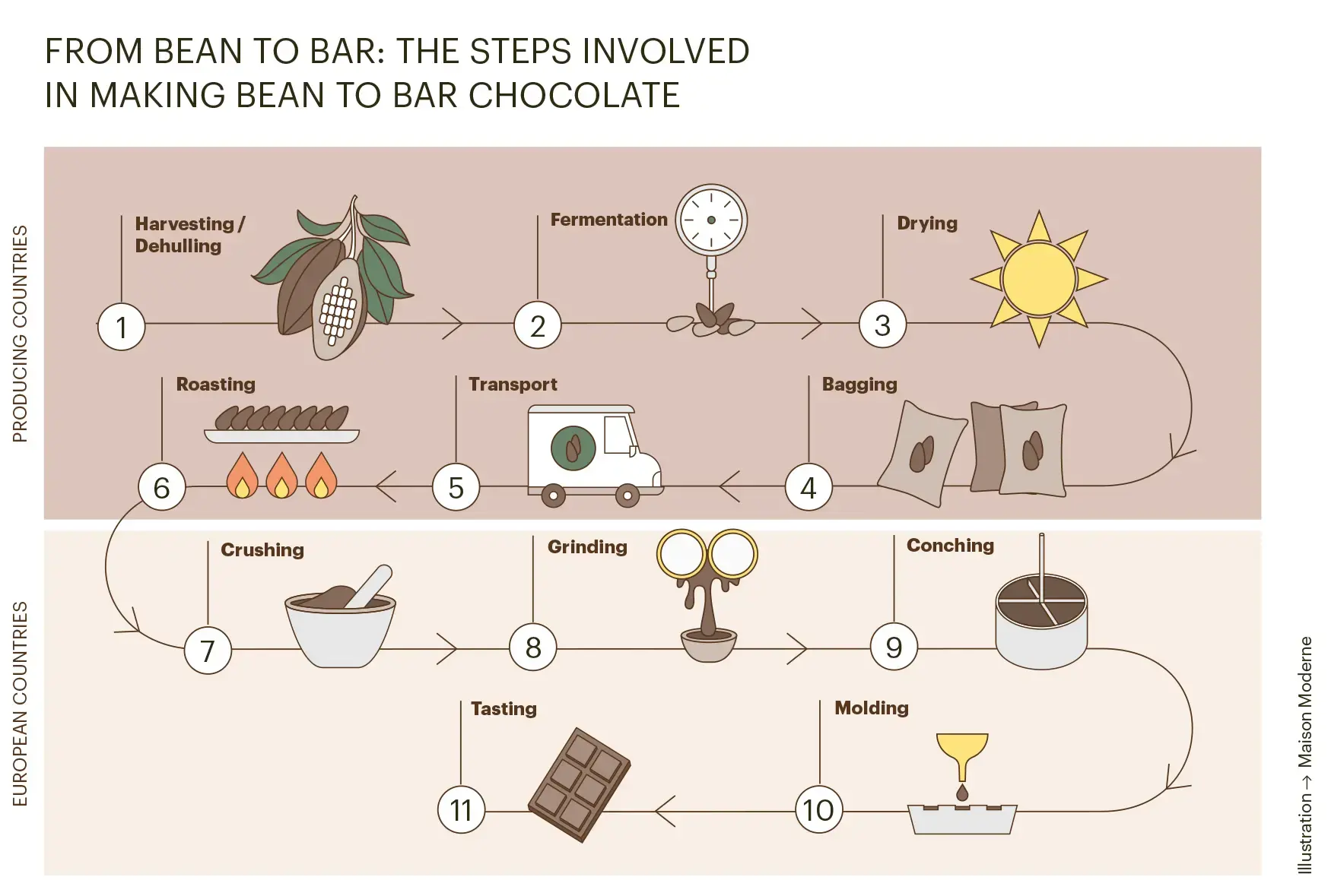 Le chocolat Bean to Bar est réalisé selon un long processus qui nécessite une excellente connaissance humaine et technique.