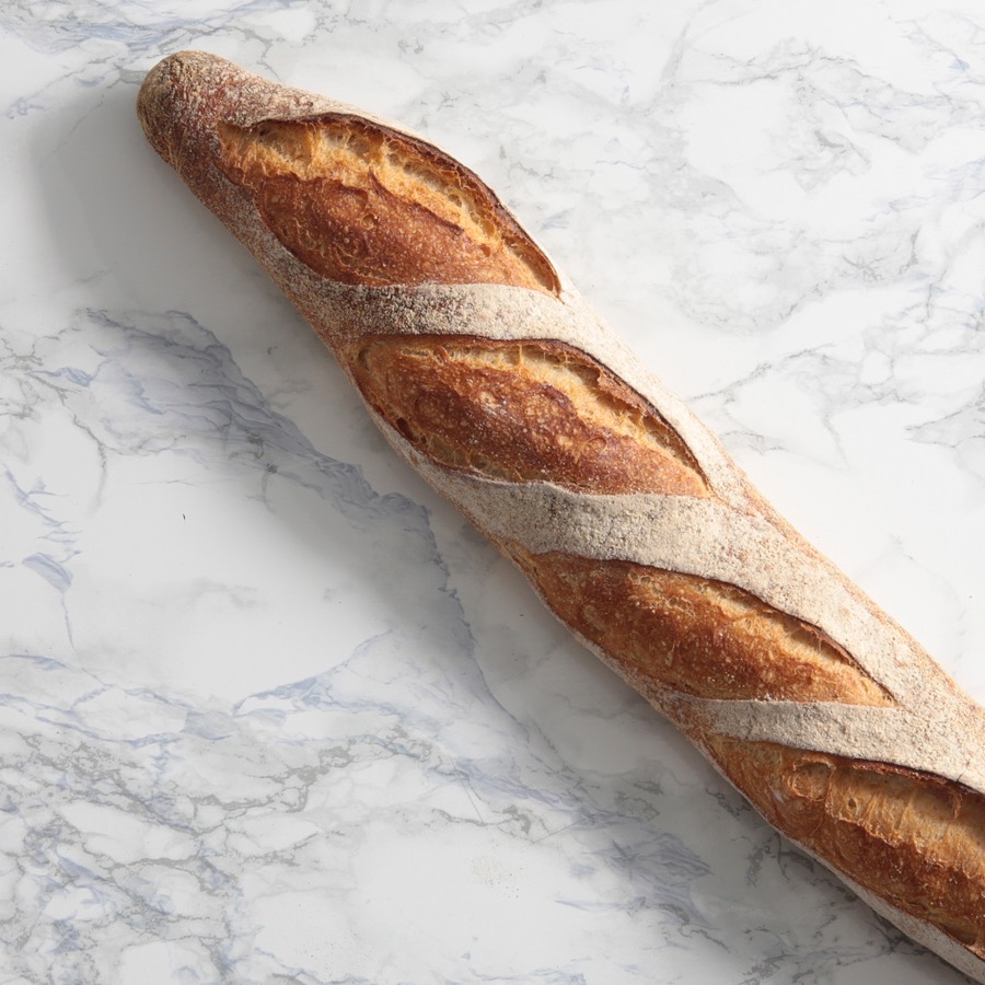 Réalisée à base de farine de blé ancien* et façonnée entièrement à la main par nos artisans boulangers, notre baguette dispose d’une belle coloration et d’une meilleure conservation. Croustillant garanti.